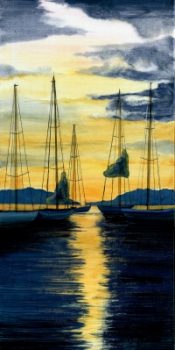 I have been painting on and off for the past 45 years. I started out with oil and acrylic and have then taken up watercolor painting since retiring eight years ago. I am mostly self taught but I am under the tutelage of watercolor artist Jim Dolan.
