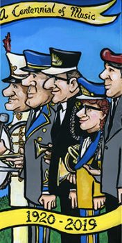 Dean Konop, born and raised in Two Rivers, Wisconsin, is a local artist known for his artistic caricature paintings. Dean graduated from Silver Lake College in 1997 and started his caricature business that same year. He completed a Century of Music with the intent to promote the 100th Anniversary of the Two Rivers Community Band which was formerly the Two Rivers Municipal Band. Pictured are band members from 5 different eras of the band.